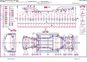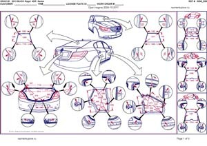 Размеры кузова, как проекционные, так и непосредственного измерения, в том числе диагональные размеры проемов кузова.