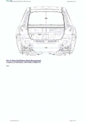 - Геометрические размеры кузова BUICK Encore для автомобилей североамериканского рынка, как проекционные, так и непосредственного измерения, в том числе диагональные размеры проемов кузова и контрольные точки для восстановления геометрии кузова.