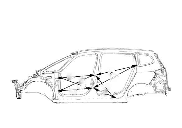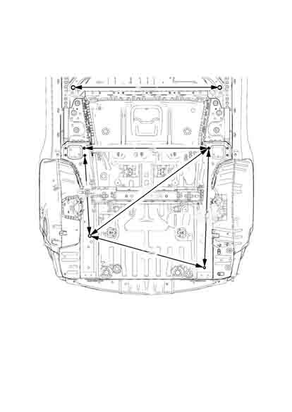 Контрольные кузовные размеры из официального руководства по ремонту кузова OPEL Zafira C 2011-2016-2019, в том числе диагональные размеры проемов кузова.