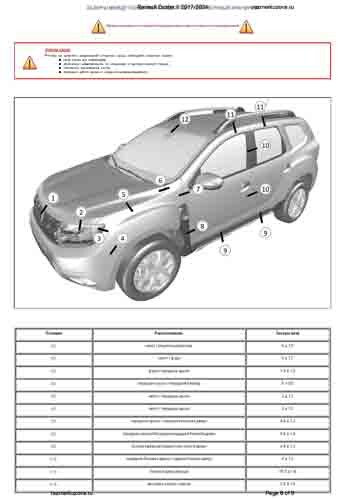 Контрольные кузовные размеры RENAULT Duster 2 2017-2024: