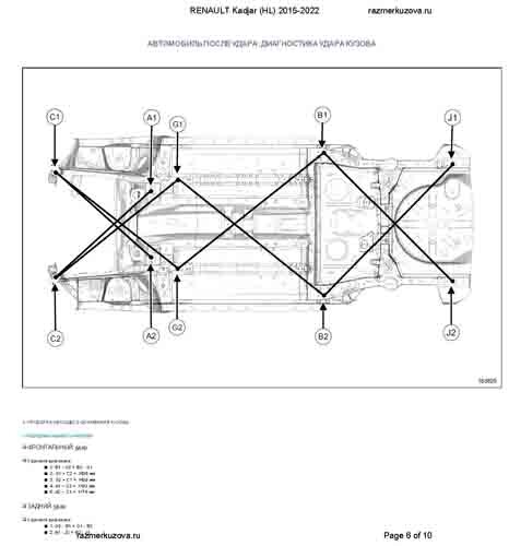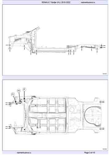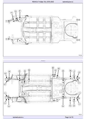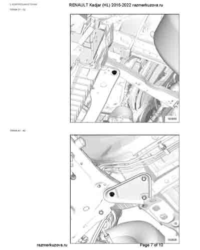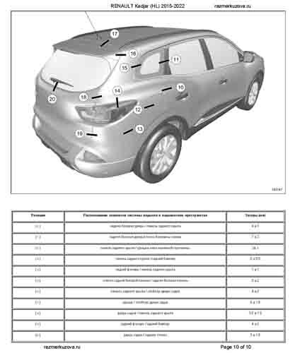 Контрольные кузовные размеры RENAULT Kadjar 2015-2018-2022: