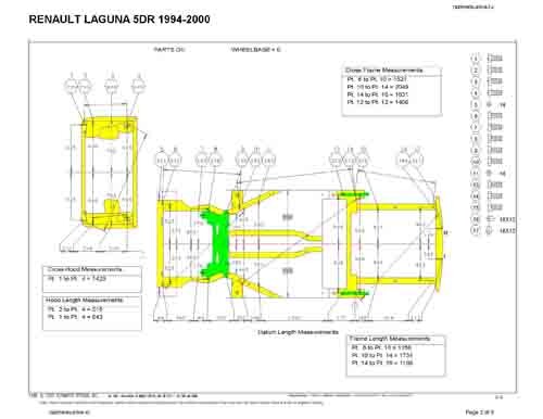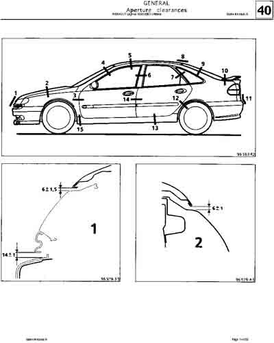 Контрольные кузовные размеры RENAULT Laguna 1 1993-2001: