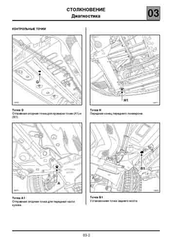 - Проекционные размеры с привязкой к стапелю. Дополнительно приведены цветные фотографии мест расположения контрольных точек на реальном автомобиле.