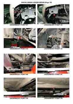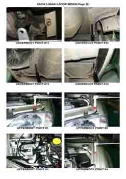 - Проекционные размеры с привязкой к стапелю. Дополнительно приведены цветные фотографии мест расположения контрольных точек на реальном автомобиле.