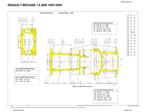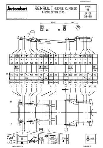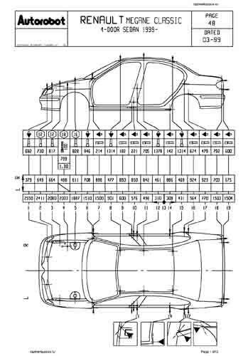 Контрольные кузовные размеры RENAULT Megane 1 1996-1999-2003: