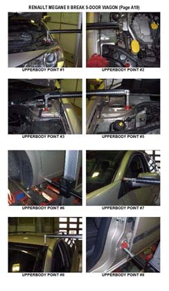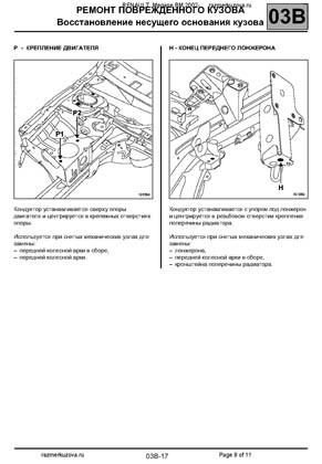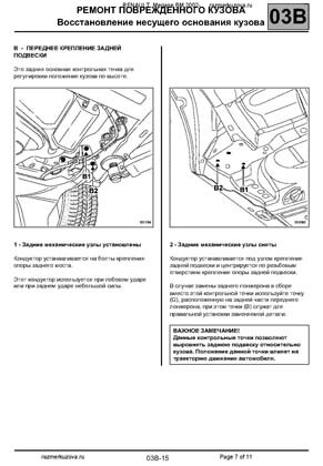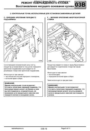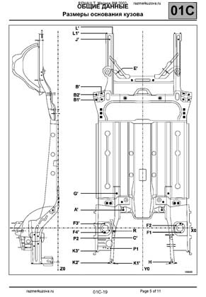 - Проекционные размеры с привязкой к стапелю. Дополнительно приведены цветные фотографии мест расположения контрольных точек на реальном автомобиле.