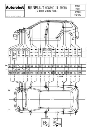 Контрольные кузовные размеры RENAULT Megane 2 (XM0) 2002-2009: