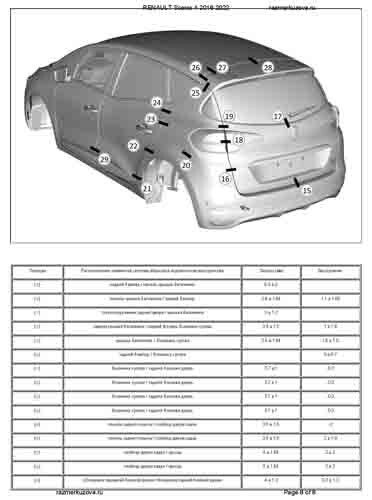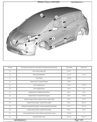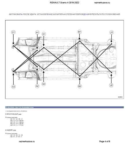 Контрольные кузовные размеры RENAULT Scenic 4 2016-2022: