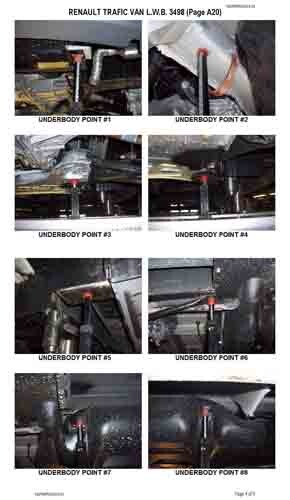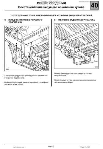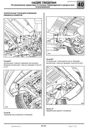 - Проекционные размеры с привязкой к стапелю. Дополнительно приведены цветные фотографии мест расположения контрольных точек на реальном автомобиле.
