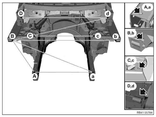 Контрольные кузовные размеры из официального руководства по ремонту кузова ROLLS-ROYCE Cullinan (RR31) 2018--. Дополнительно приведены величины зазоров кузовных панелей. Пояснения к чертежам автоматически переведены на русский язык.