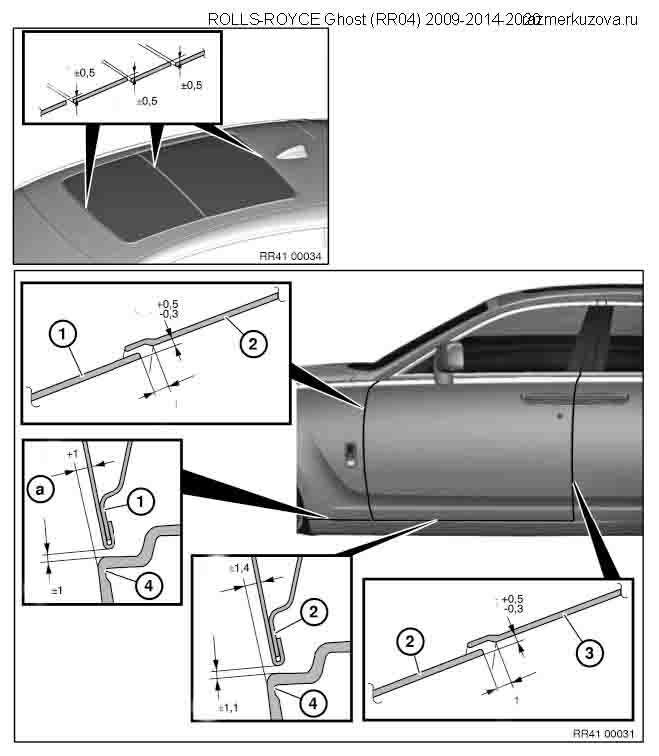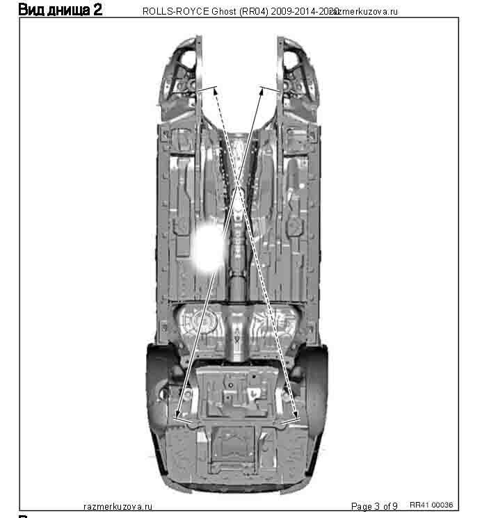 Контрольные кузовные размеры из официального руководства по ремонту кузова ROLLS-ROYCE Ghost (RR04) 2009-2014-2020.