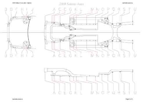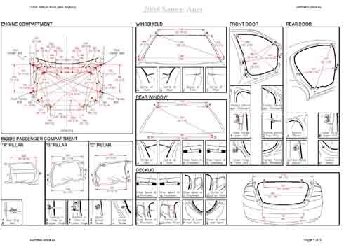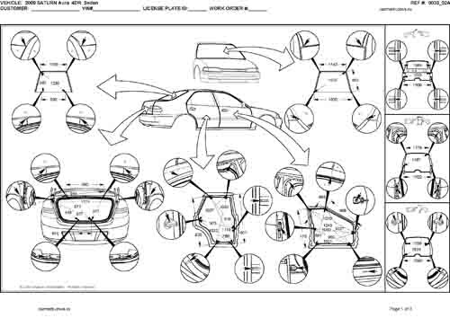 - Геометрические размеры кузова SATURN Aura 2006-2009, как проекционные, так и непосредственного измерения, в том числе диагональные размеры проемов кузова и контрольные точки для восстановления геометрии кузова.
