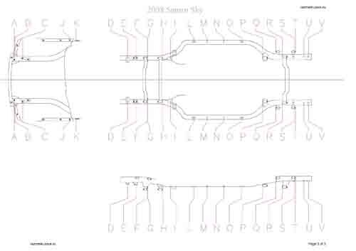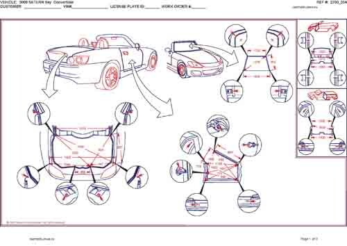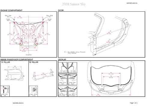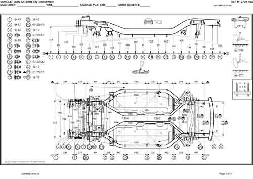 - Геометрические размеры кузова SATURN Sky 2006-2009, как проекционные, так и непосредственного измерения, в том числе диагональные размеры проемов кузова и контрольные точки для восстановления геометрии кузова.