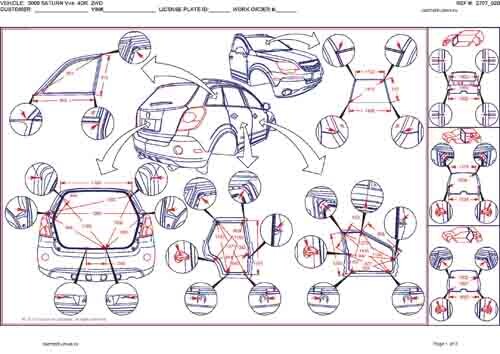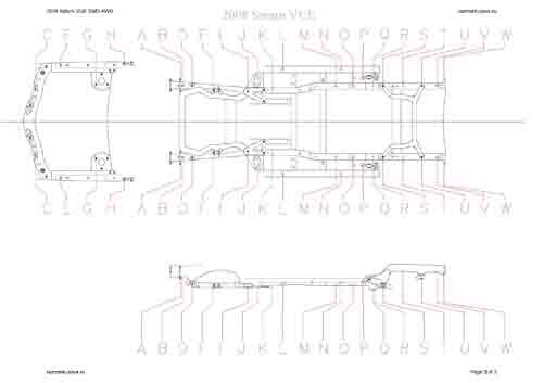 - Геометрические размеры кузова SATURN VUE 2007-2009 для автомобилей североамериканского рынка, как проекционные, так и непосредственного измерения, в том числе диагональные размеры проемов кузова и контрольные точки для восстановления геометрии кузова.