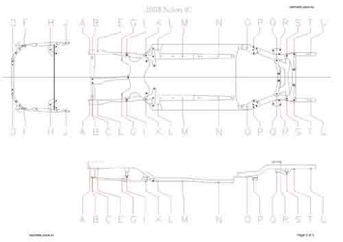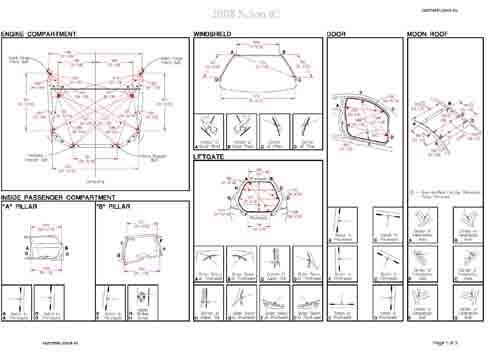 - Геометрические размеры кузова SCION tC 2004-2007-2010, как проекционные, так и непосредственного измерения, в том числе диагональные размеры проемов кузова и контрольные точки для восстановления геометрии кузова.