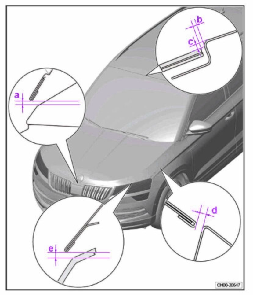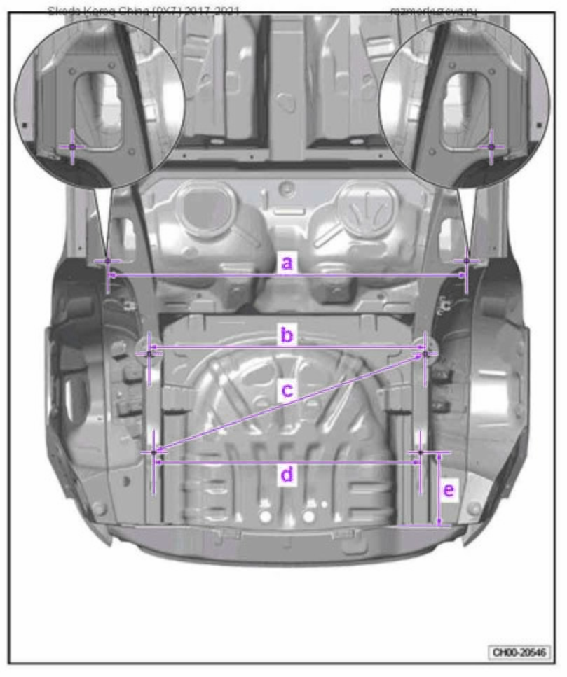 - Из заводского руководства по ремонту кузова SKODA Karoq China (0X7) 2017-2021--, в том числе размеры проемов. Дополнительно приведены величины допустимых зазоров кузовных панелей.