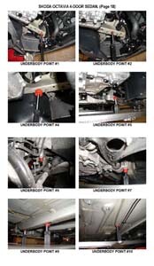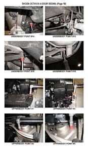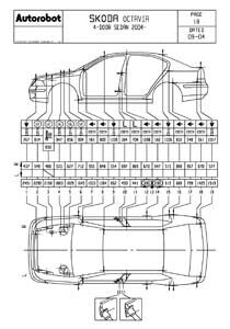- Проекционные геометрические размеры кузова SKODA Octavia II (1Z) 2004-2008-2013 с привязкой к стапелю. Дополнительно приведены цветные фотографии мест расположения контрольных точек на реальном автомобиле.