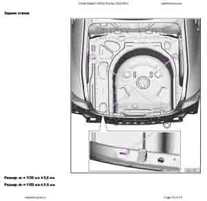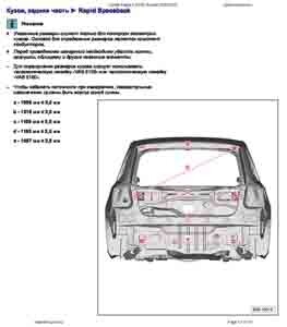 - Из заводского руководства по ремонту кузова SKODA Rapid II (NK6) Russia 2020-2023, в том числе модели Spaceback. Дополнительно приведены величины допустимых зазоров кузовных панелей.