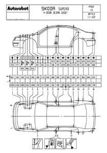 - Проекционные геометрические размеры кузова SKODA Superb I с привязкой к стапелю.