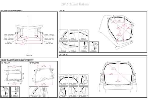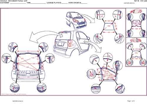- Геометрические размеры кузова SMART fortwo 2007-2015, как проекционные, так и непосредственного измерения, в том числе диагональные размеры проемов кузова и контрольные точки для восстановления геометрии кузова. Рассмотрены кузова Купе и Кабриолет.