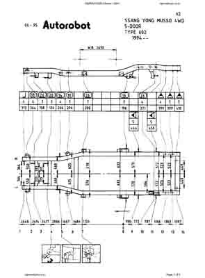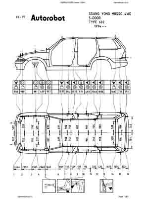Контрольные кузовные размеры SSANGYONG Musso 1994-2005 из официального руководства по ремонту кузова.