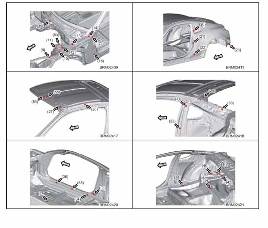 - Из заводского руководства по ремонту кузова SUBARU BRZ (Z2) 2021--, в том числе размеры проемов. Дополнительно приведены величины допустимых зазоров кузовных панелей.