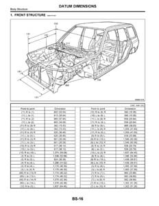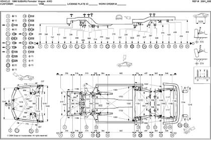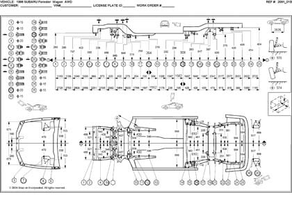 Контрольные кузовные размеры SUBARU Forester (SF) 1996-2002: