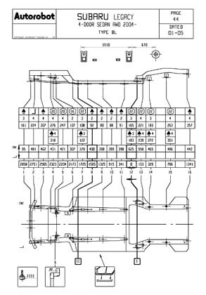 Контрольные кузовные размеры SUBARU Legacy (BL, BP) 2003-2009: