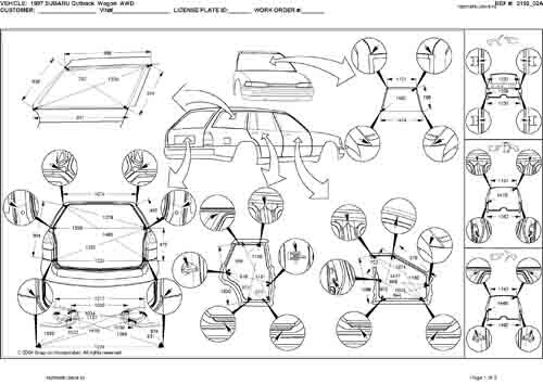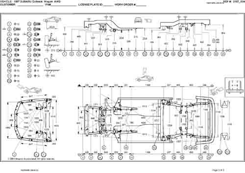 - Геометрические размеры кузова SUBARU Outback (BG) 1994-1999, как проекционные, так и непосредственного измерения, в том числе диагональные размеры проемов кузова и контрольные точки для восстановления геометрии кузова.