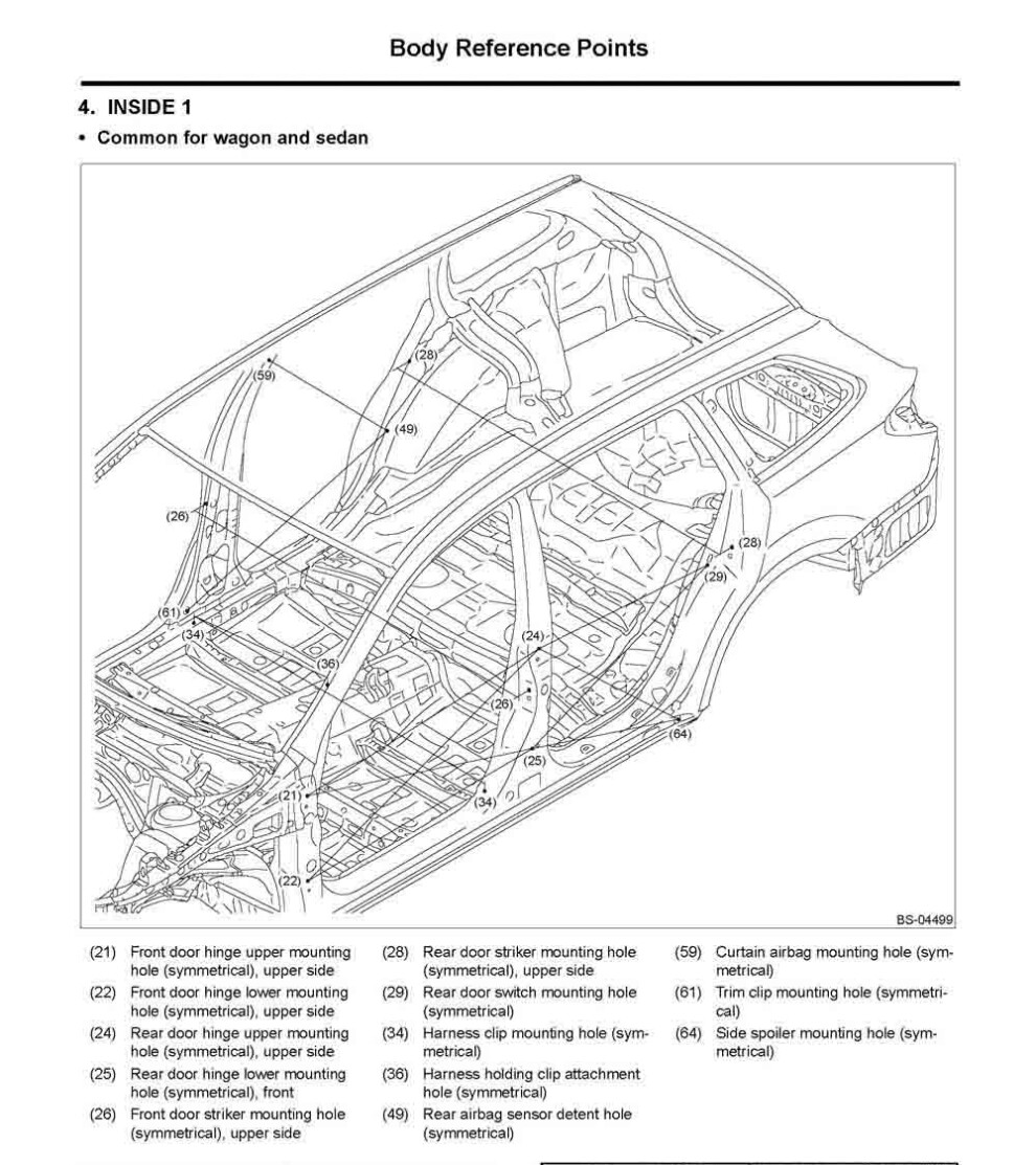 - Из заводского руководства по ремонту кузова SUBARU Outback (BR) 2009-2014, в том числе размеры проемов. Дополнительно приведены величины допустимых зазоров кузовных панелей.