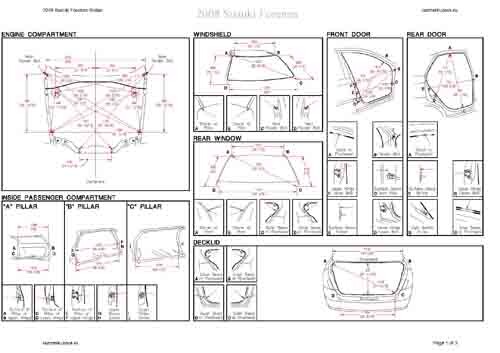 - Геометрические размеры кузова SUZUKI Forenza 2004-2008 для автомобилей североамериканского рынка, как проекционные, так и непосредственного измерения, в том числе диагональные размеры проемов кузова и контрольные точки для восстановления геометрии кузова. Рассмотрены модели Sedan и Wagon.