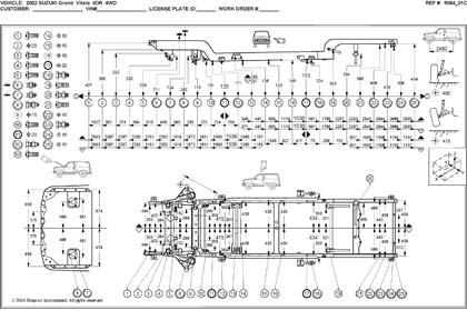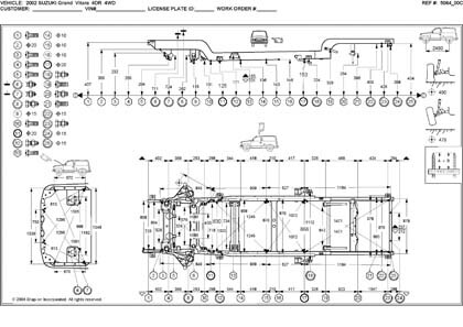 Контрольные кузовные размеры SUZUKI Grand Vitara / Escudo (SQ) 1998-2005: