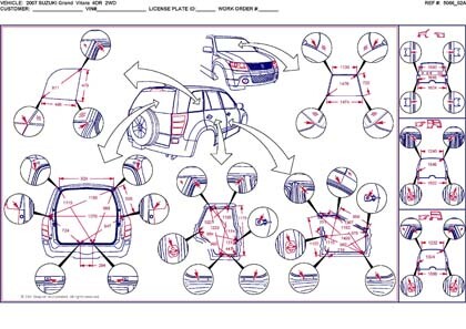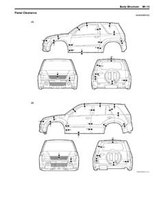 - Из заводского руководства по ремонту кузова SUZUKI Grand Vitara New (JB) 2005-2012, в том числе диагональные размеры проемов кузова и величины зазоров кузовных панелей.