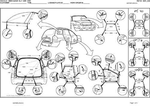 Контрольные кузовные размеры SUZUKI Grand Vitara XL-7 (JA) 2001-2006: