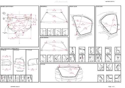 - Геометрические размеры кузова SUZUKI Kizashi 2009-2014, как проекционные, так и непосредственного измерения, в том числе диагональные размеры проемов кузова и контрольные точки для восстановления геометрии кузова.