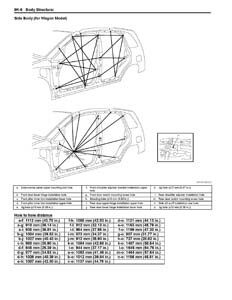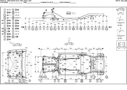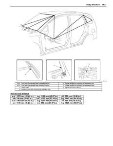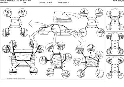 Контрольные кузовные размеры SUZUKI Liana, Aerio 2001-2008 моделей Seadan и Wagon: