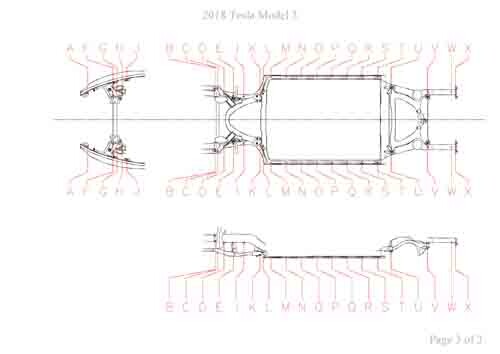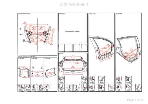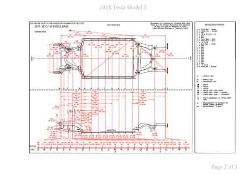 - Геометрические размеры кузова TESLA Model 3 2018--, как проекционные, так и непосредственного измерения, в том числе диагональные размеры проемов кузова и контрольные точки для восстановления геометрии кузова.