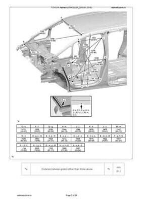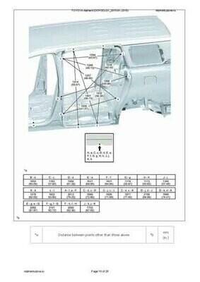 - Из официального руководства по ремонту кузова TOYOTA Alphard (GGH30) 2015-2017-2023, в том числе диагональные размеры проемов.