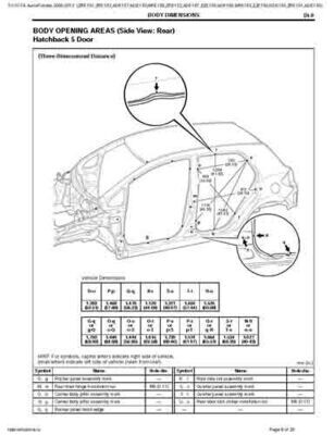 - Из официального руководства по ремонту кузова TOYOTA Auris / Corolla (10_2006--09_2012) (ZRE151,ZRE152,ADE157,NDE150,NRE150,ZRE152,ADE157,ZZE150,ADE150,NRE150,ZZE150,NDE150,ZRE151,ADE150), в том числе диагональные размеры проемов.