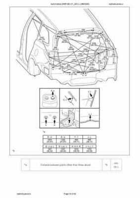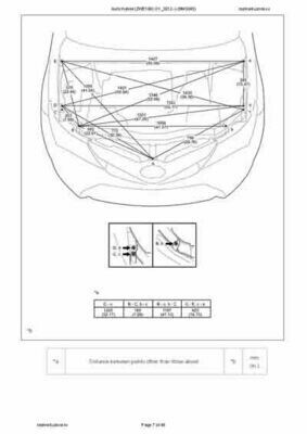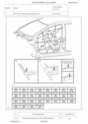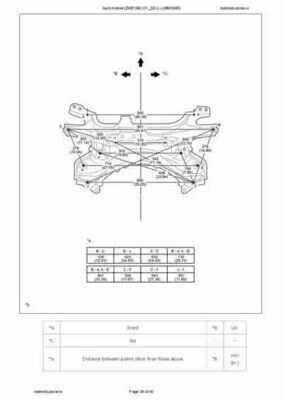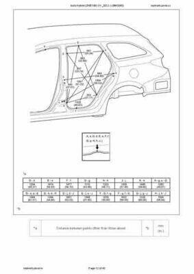 - Из официального руководства по ремонту кузова TOYOTA Auris Hybrid (ZWE186) (11_2012--), в том числе диагональные размеры проемов. Применимо для моделей с гибридной силовой установкой в кузовах хэтчбэк и универсал.