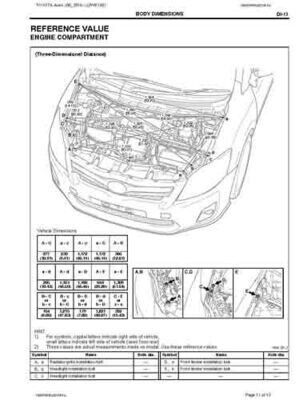 - Из официального руководства по ремонту кузова TOYOTA Auris Hybrid (06_2010--09_2012) (ZWE150), в том числе диагональные размеры проемов.