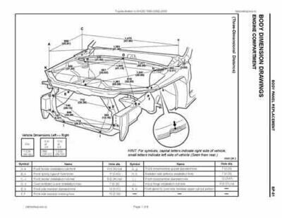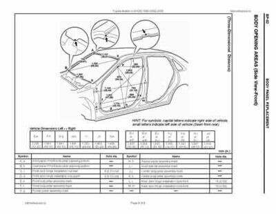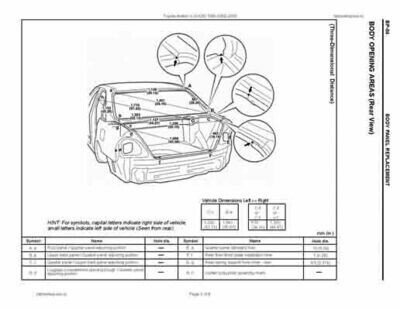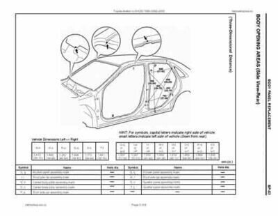 - Из официального руководства по ремонту кузова TOYOTA Avalon 1999-2002-2005, в том числе диагональные размеры проемов.