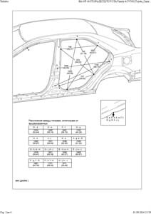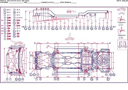 -Геометрические размеры TOYOTA Camry североамериканского рынка, как проекционные, так и непосредственного измерения, в том числе диагональные размеры проемов кузова и контрольные точки для восстановления геометрии.