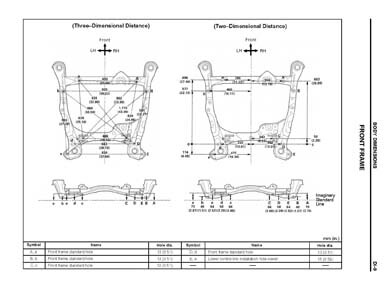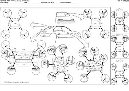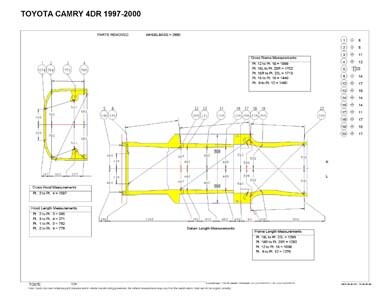 -Геометрические размеры, как проекционные, так и непосредственного измерения, в том числе диагональные размеры проемов кузова и контрольные точки для восстановления геометрии.