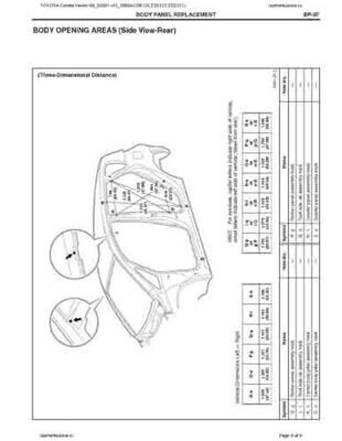 - Из официального руководства по ремонту кузова TOYOTA Corolla Verso (09_02001--01_2004)(CDE120,ZZE122,ZZE121), в том числе диагональные размеры проемов.