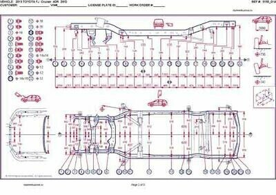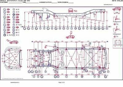 -Геометрические размеры автомобилей TOYOTA FJ Cruiser, как проекционные, так и непосредственного измерения, в том числе диагональные размеры проемов кузова и контрольные точки для восстановления геометрии.