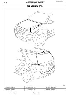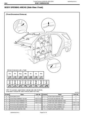 - Из официального руководства по ремонту кузова TOYOTA Fortuner I, в том числе диагональные размеры проемов.