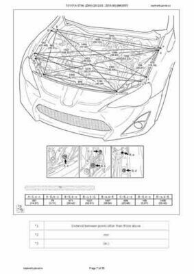 - Из официального руководства по ремонту кузова TOYOTA GT86 (ZN6) (2016-06--), в том числе диагональные размеры проемов.