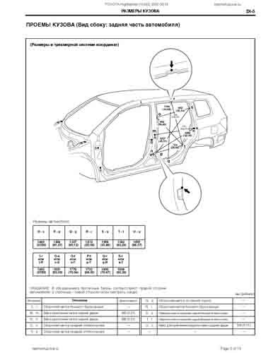 - Из официального руководства по ремонту кузова TOYOTA Highlander (XU40) 2007-2013, в том числе диагональные размеры проемов.