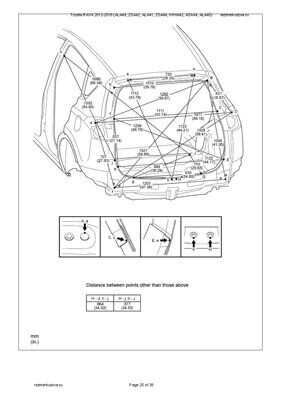 - Из заводского руководства по ремонту кузова для серий ALA49, ZSA42,ALA41, ZSA44, WWA42, ASA44, ALA40, в том числе диагональные размеры проемов.
